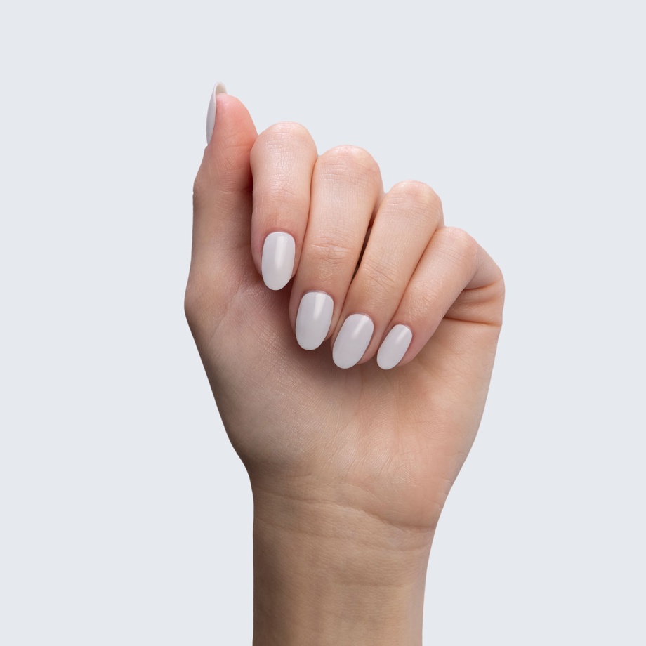 Pale dove grey. White range. Muted. Opaque. Warm undertone.